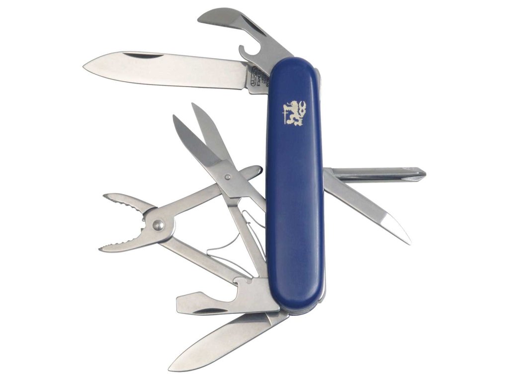 čepel; malá čepel; otvírač na láhve/šroubovák/drážka na odizolování vodičů; otvírač na konzervy; nůžky; kleště; křížový šroubovák; bodec;