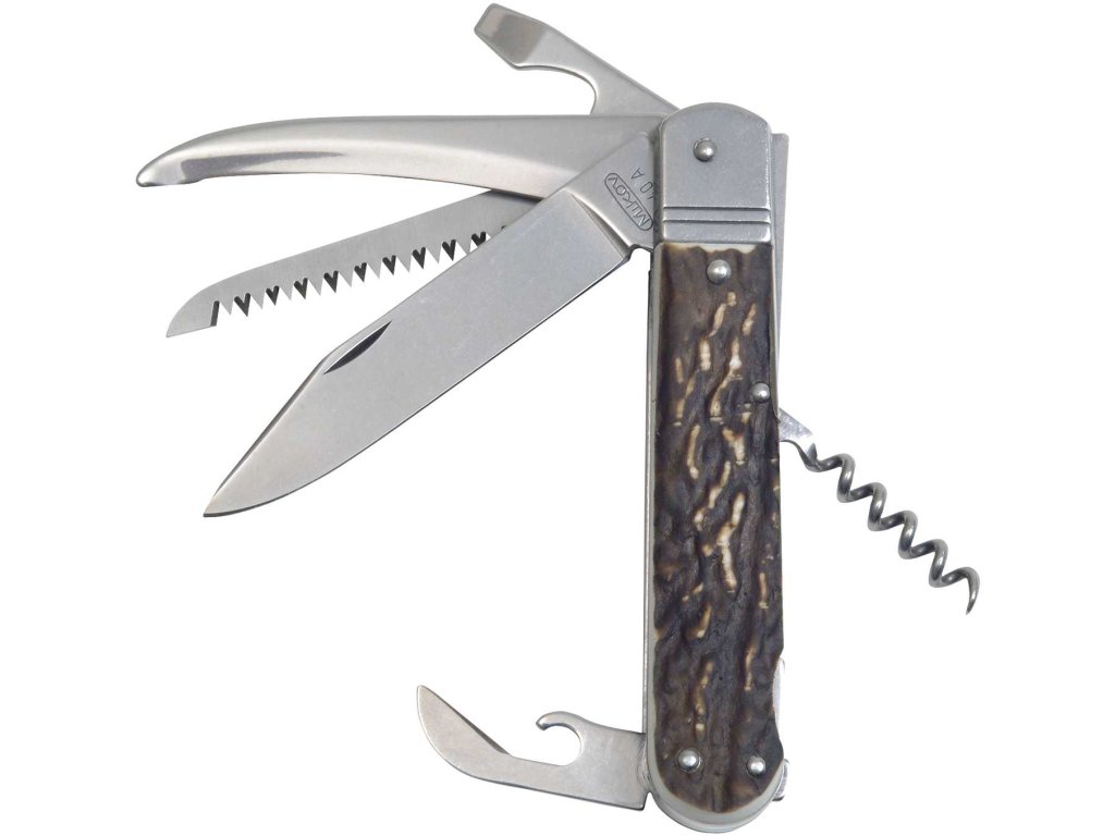 čepel; pilka; párák; plochý šroubovák / otvírač lahví; otvírač konzerv; vývrtka; kožené pouzdro; dárková krabička