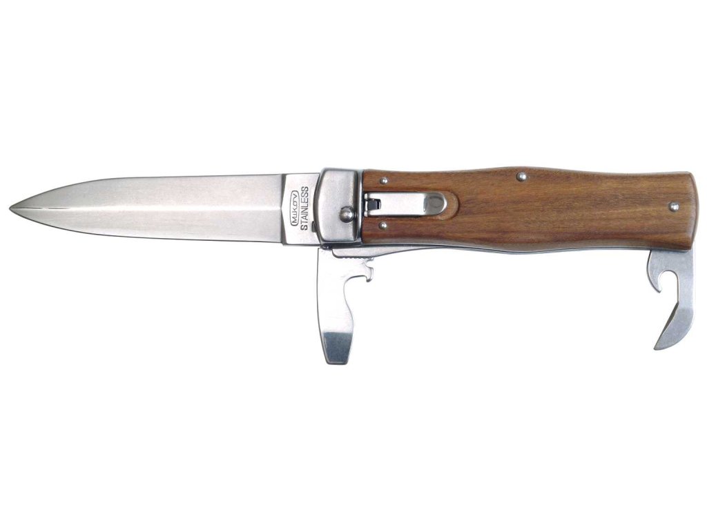 čepel; otvírač na láhve/šroubovák/drážka na odizolování vodičů; otvírač na konzervy; kožené pouzdro