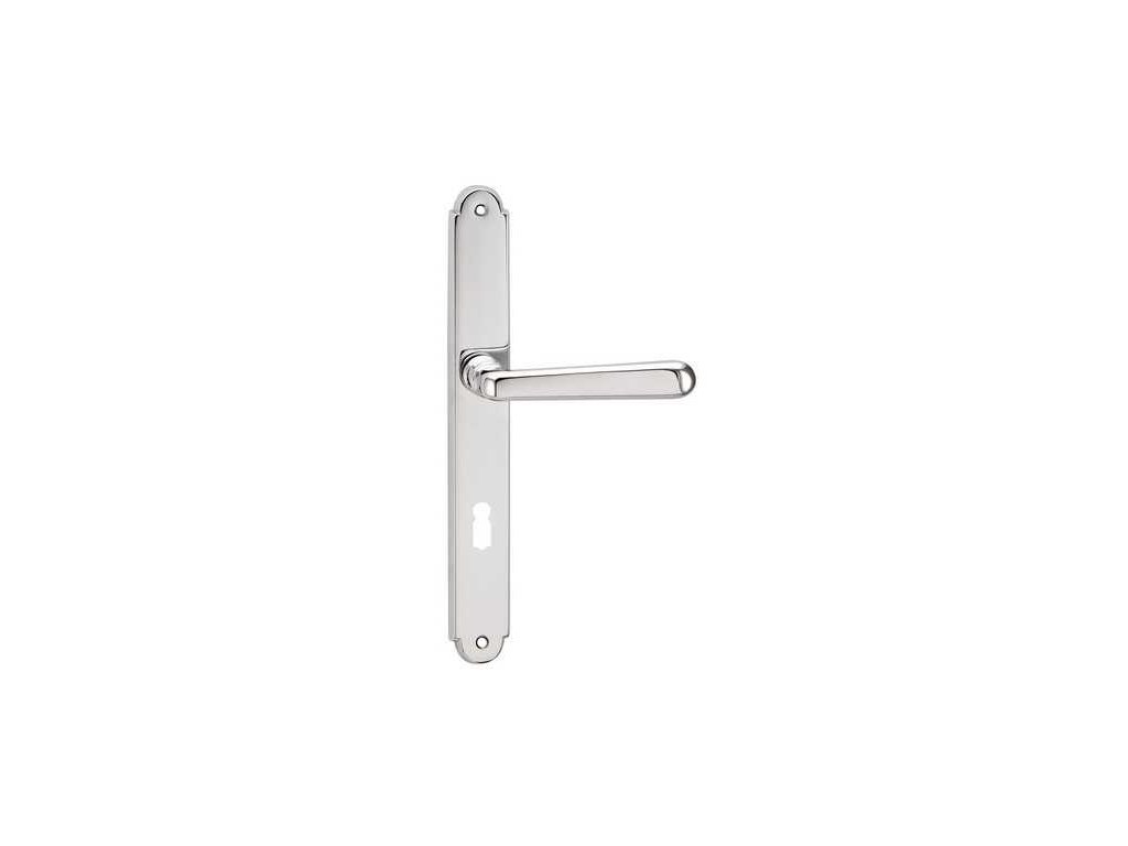 Mosazné kování s plnými klikami, tvarově vhodné například při renovaci historických a dobových interiérů.
