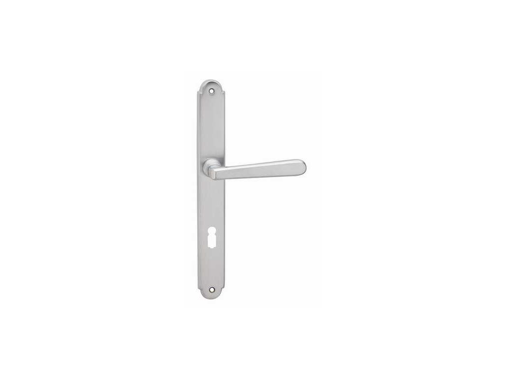 Mosazné kování s plnými klikami, tvarově vhodné například při renovaci historických a dobových interiérů.