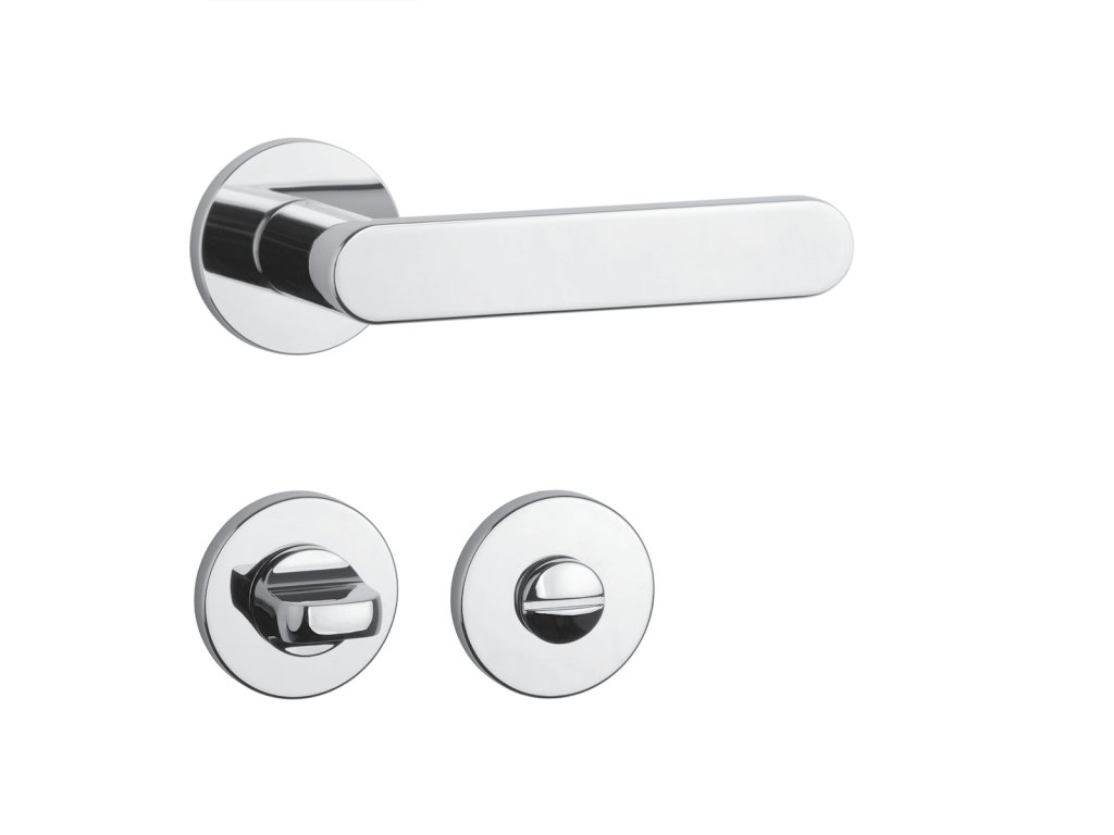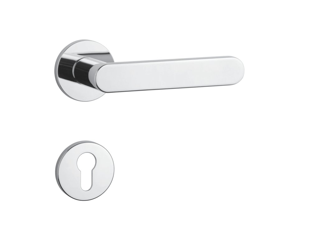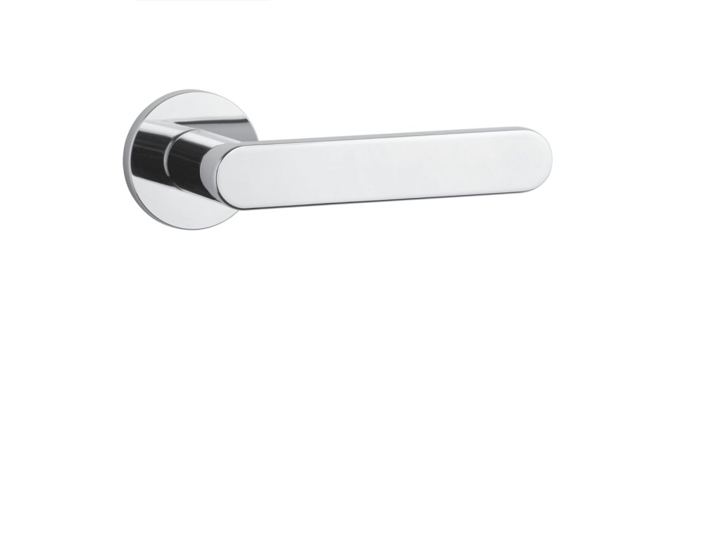 Rozetová klika na interiérové dveře s kulatou rozetou je vyrobena z materiálů vysoké kvality - zamak a je povrchově upravena. Rozeta má průměr 52 mm a tloušťku jen 7 mm. Minimalistický design rozety s vysokou stabilitou kliky na dveřích působí jemně, a tím ponechává prostor pro vyniknutí designu samotné kliky.