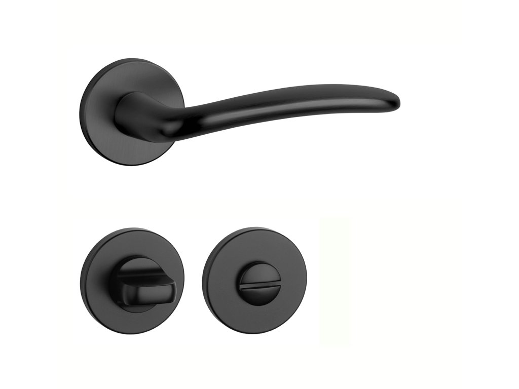 Rozetová klika na interiérové dveře s kulatou rozetou je vyrobena z materiálů vysoké kvality - zamak a je povrchově upravena. Rozeta má průměr 52 mm a tloušťku jen 7 mm. Minimalistický design rozety s vysokou stabilitou kliky na dveřích působí jemně, a tím ponechává prostor pro vyniknutí designu samotné kliky.