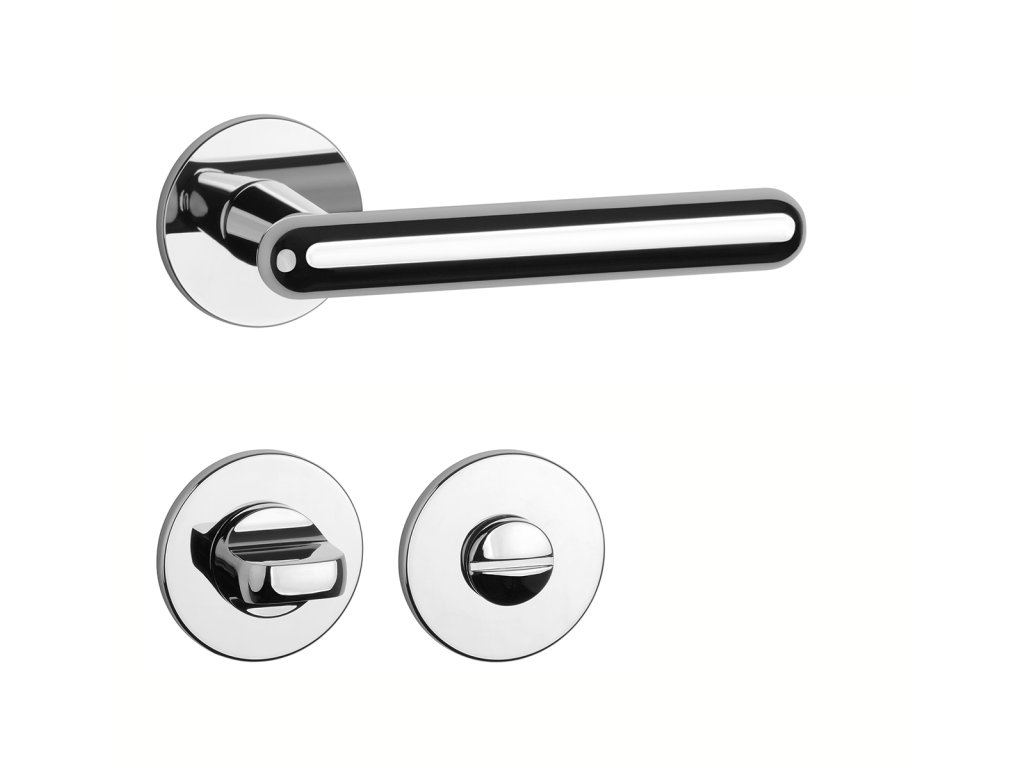 Rozetová klika na interiérové dveře s kulatou rozetou je vyrobená z materiálů vysoké kvality - zamak a je povrchově upravená. Rozeta má průměr 52 mm a tloušťku jen 5 mm. Minimalistický design rozety s vysokou stabilitou kliky na dveřích působí jemně, a tím ponechává prostor pro vyniknutí designu samotné kliky.