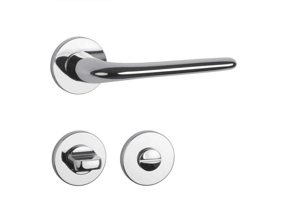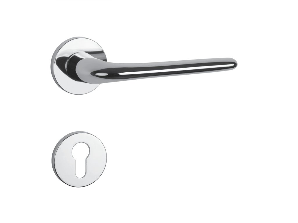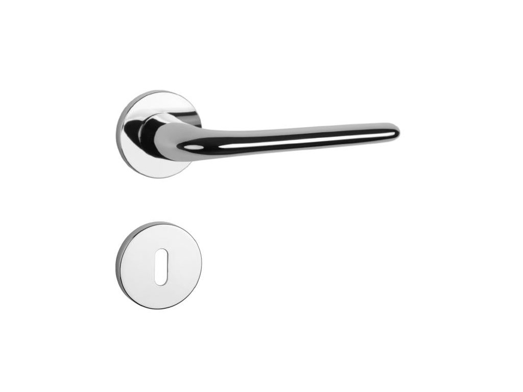 Rozetová klika na interiérové dveře s kulatou rozetou je vyrobena z materiálů vysoké kvality - zamak a je povrchově upravena. Rozeta má průměr 52 mm a tloušťku jen 7 mm. Minimalistický design rozety s vysokou stabilitou kliky na dveřích působí jemně, a tím ponechává prostor pro vyniknutí designu samotné kliky.