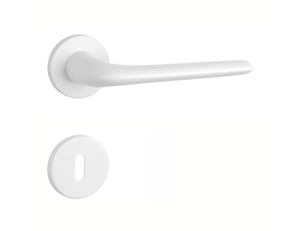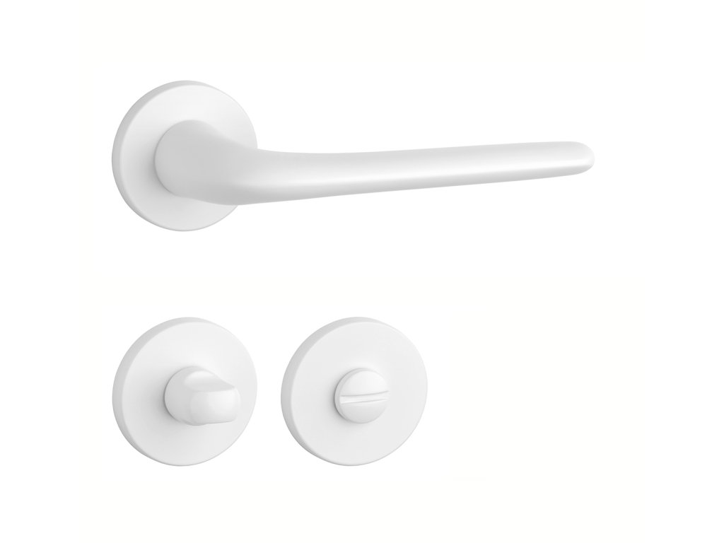 Rozetová klika na interiérové dveře s kulatou rozetou je vyrobena z materiálů vysoké kvality - zamak a je povrchově upravena. Rozeta má průměr 52 mm a tloušťku jen 7 mm. Minimalistický design rozety s vysokou stabilitou kliky na dveřích působí jemně, a tím ponechává prostor pro vyniknutí designu samotné kliky.