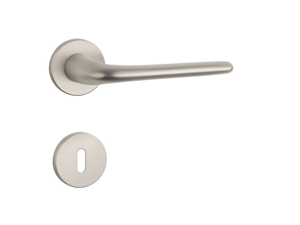 Rozetová klika na interiérové dveře s kulatou rozetou je vyrobena z materiálů vysoké kvality - zamak a je povrchově upravena. Rozeta má průměr 52 mm a tloušťku jen 7 mm. Minimalistický design rozety s vysokou stabilitou kliky na dveřích působí jemně, a tím ponechává prostor pro vyniknutí designu samotné kliky.