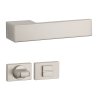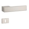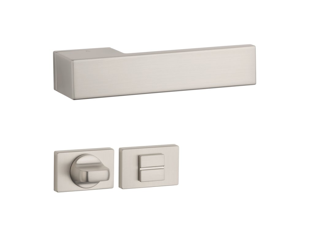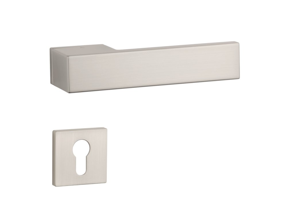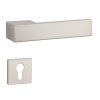Rozetová klika na interiérové dveře s obdélníkovou rozetou je vyrobena z materiálů vysoké kvality - zamak a je povrchově upravena. Rozeta má rozměr 52 x 33 mm a tloušťku jen 7 mm. Minimalistický design rozety s vysokou stabilitou kliky na dveřích působí jemně, a tím ponechává prostor pro vyniknutí designu samotné kliky.