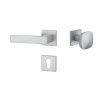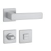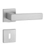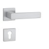 Rozetová klika na interiérové dveře s hranatou rozetou je vyrobena z materiálů vysoké kvality - zamak a je povrchově upravena. Rozeta má rozměry 52x52 mm a tloušťku jen 7 mm. Minimalistický design rozety s vysokou stabilitou kliky na dveřích působí jemně, a tím ponechává prostor pro vyniknutí designu samotné kliky.