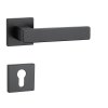Rozetová klika na interiérové dveře s hranatou rozetou je vyrobena z materiálů vysoké kvality - zamak a je povrchově upravena. Rozeta má rozměry 52x52 mm a tloušťku jen 7 mm. Minimalistický design rozety s vysokou stabilitou kliky na dveřích působí jemně, a tím ponechává prostor pro vyniknutí designu samotné kliky.