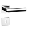 Rozetová klika na interiérové dveře s hranatou rozetou je vyrobena z materiálů vysoké kvality - zamak a je povrchově upravena. Rozeta má rozměry 52x52 mm a tloušťku jen 7 mm. Minimalistický design rozety s vysokou stabilitou kliky na dveřích působí jemně, a tím ponechává prostor pro vyniknutí designu samotné kliky.
