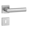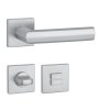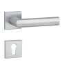 Rozetová klika na interiérové dveře s hranatou rozetou je vyrobena z materiálů vysoké kvality - zamak a je povrchově upravena. Rozeta má rozměry 52x52 mm a tloušťku jen 7 mm. Minimalistický design rozety s vysokou stabilitou kliky na dveřích působí jemně, a tím ponechává prostor pro vyniknutí designu samotné kliky.