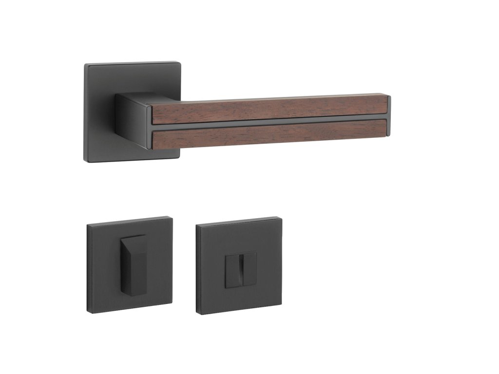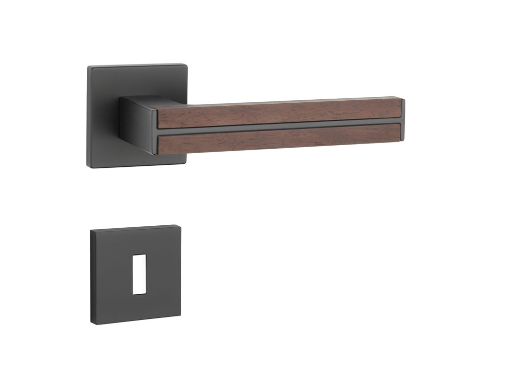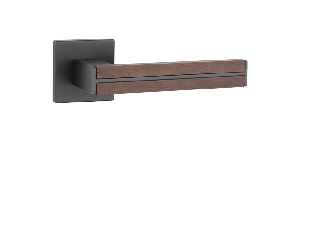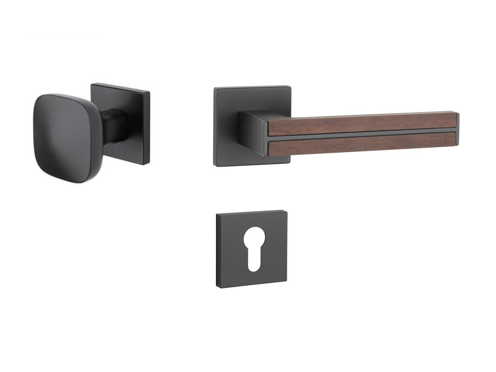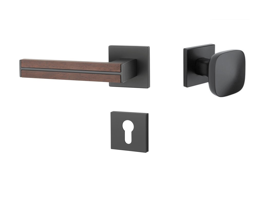 Rozetová klika na interiérové dveře s hranatou oblou rozetou je vyrobená z materiálů vysoké kvality - zamak a je povrchově upravená. Klika působí stylově a moderně, což podtrhuje i kombinace černé barvy s santalovým dřevem. Tento dekorační prvek jí dodává unikátní vzhled a navozuje příjemný pocit tepla a přírody.