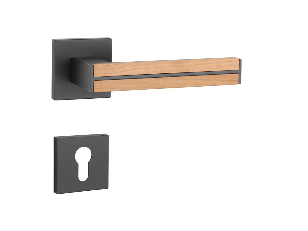 Rozetová klika na interiérové dveře s hranatou oblou rozetou je vyrobená z materiálů vysoké kvality - zamak a je povrchově upravená. Klika působí stylově a moderně, což podtrhuje i kombinace černé barvy s dubovým dřevem. Tento dekorační prvek jí dodává unikátní vzhled a navozuje příjemný pocit tepla a přírody.