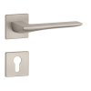 Rozetová klika na interiérové dveře s hranatou rozetou je vyrobena z materiálů vysoké kvality - zamak a je povrchově upravena. Rozeta má rozměr 52x52 mm a tloušťku jen 5 mm. Minimalistický design rozety s vysokou stabilitou kliky na dveřích působí jemně, a tím ponechává prostor pro vyniknutí designu samotné kliky.