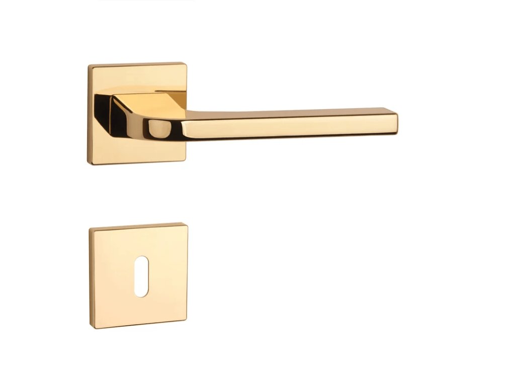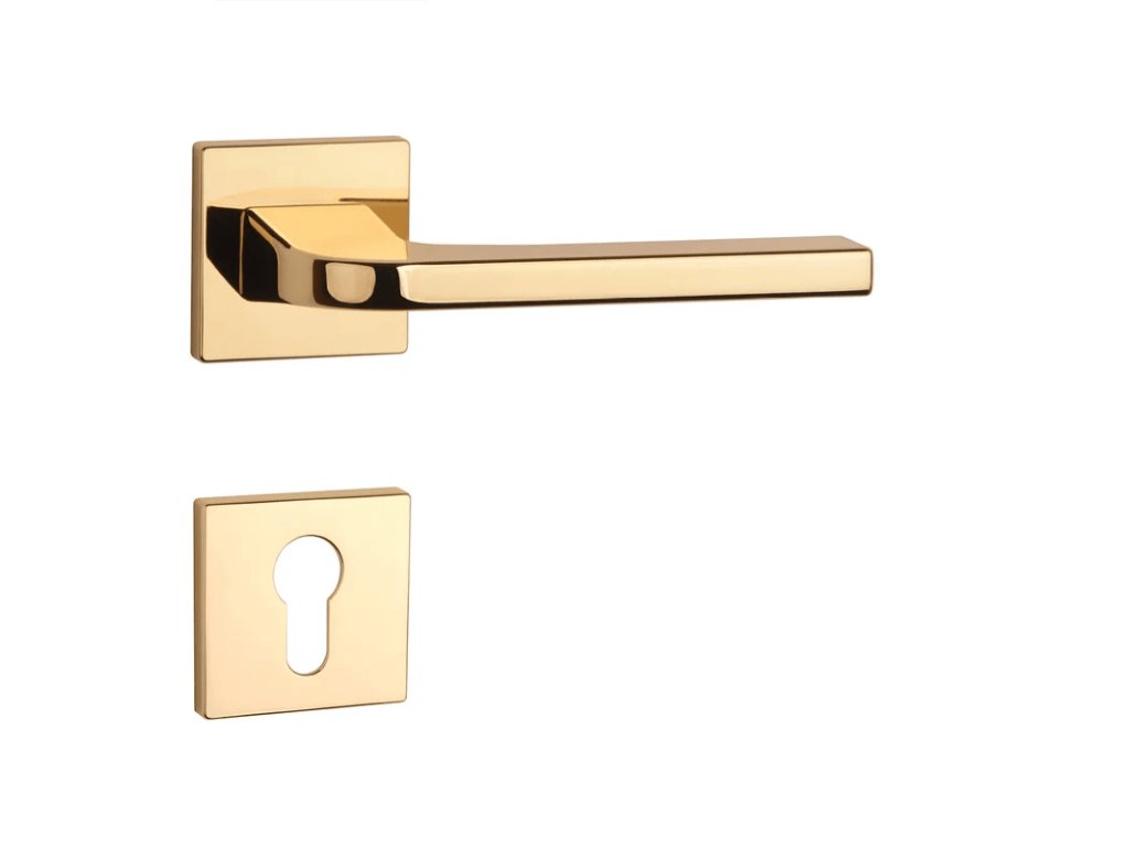 Rozetová klika na interiérové dveře s hranatou rozetou je vyrobena z materiálů vysoké kvality - zamak a je povrchově upravena. Rozeta má rozměr 52x52 mm a tloušťku jen 7 mm. Minimalistický design rozety s vysokou stabilitou kliky na dveřích působí jemně, a tím ponechává prostor pro vyniknutí designu samotné kliky.
