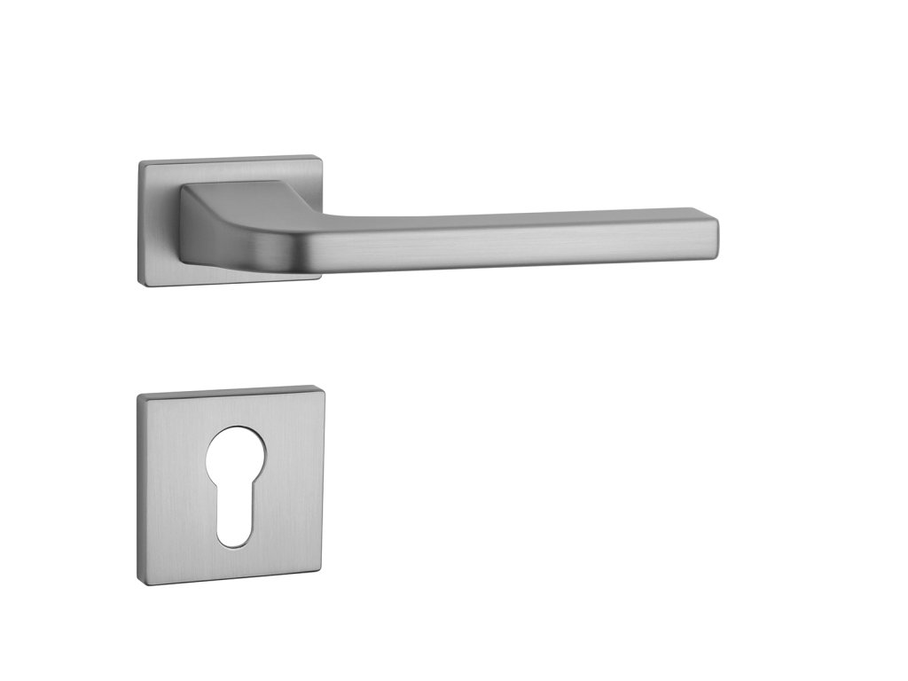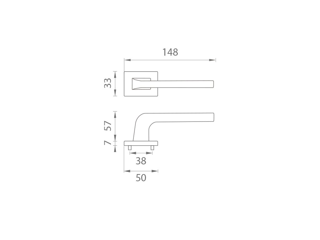 Rozetová klika na interiérové dveře s obdélníkovou rozetou je vyrobena z materiálů vysoké kvality - zamak a je povrchově upravena. Rozeta má rozměr 50 x 33 mm a tloušťku jen 7 mm. Minimalistický design rozety s vysokou stabilitou kliky na dveřích působí jemně, a tím ponechává prostor pro vyniknutí designu samotné kliky.