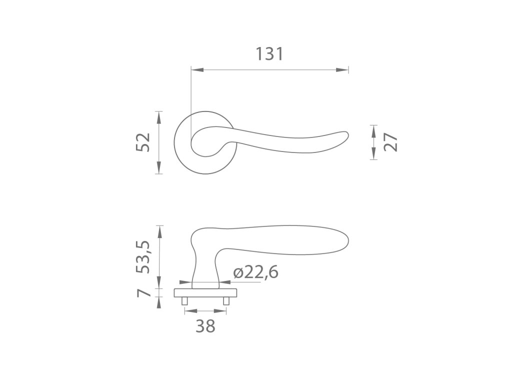 Rozetová klika na interiérové dveře s kulatou rozetou je vyrobena z materiálů vysoké kvality - zamak a je povrchově upravena. Rozeta má průměr 52 mm a tloušťku jen 7 mm. Minimalistický design rozety s vysokou stabilitou kliky na dveřích působí jemně, a tím ponechává prostor pro vyniknutí designu samotné kliky.