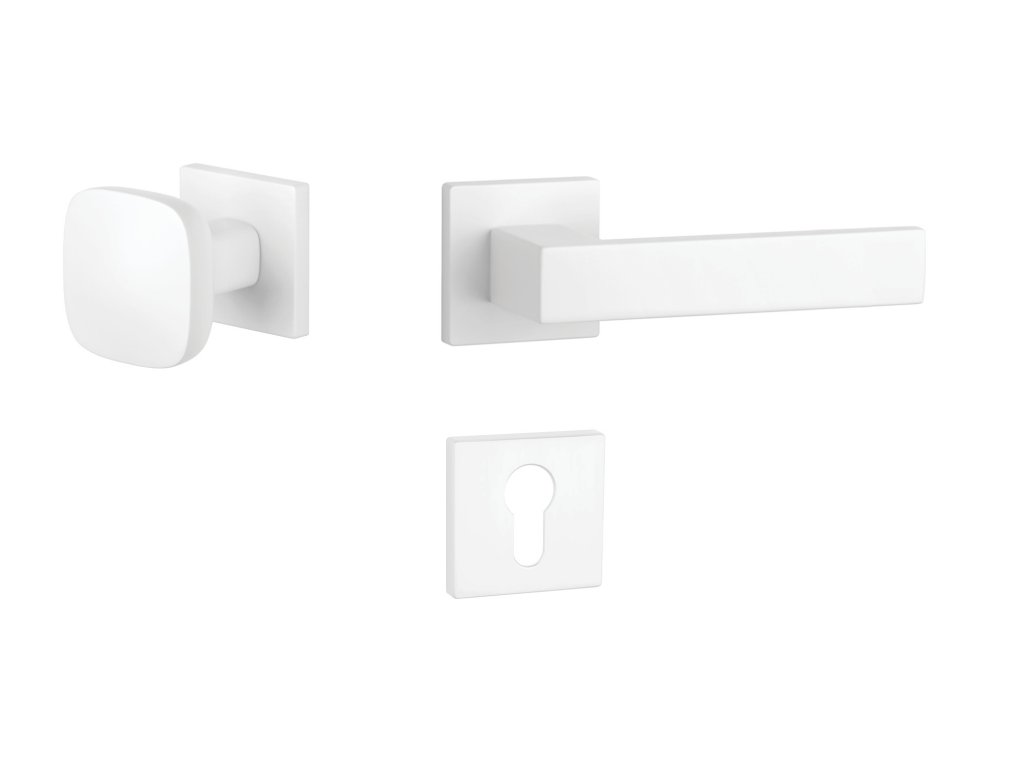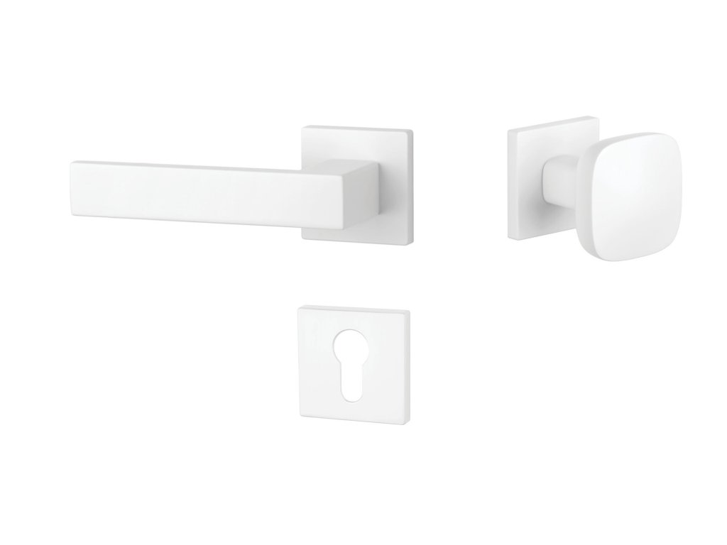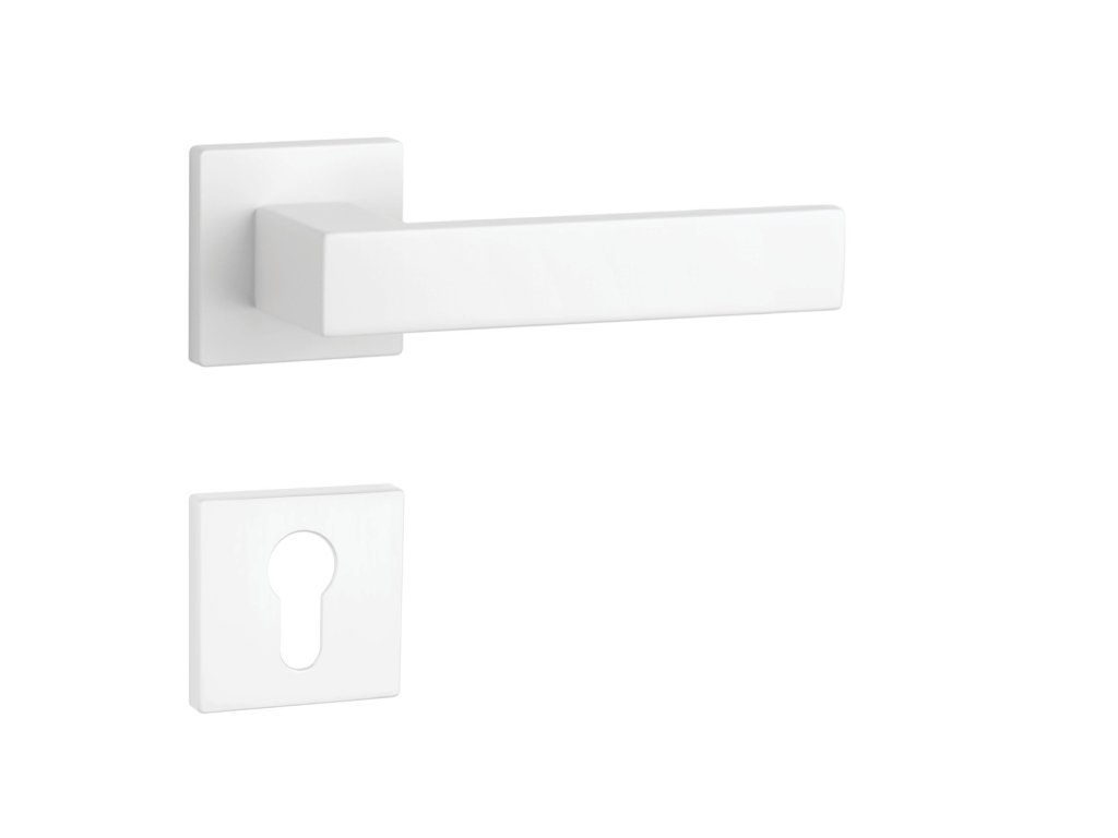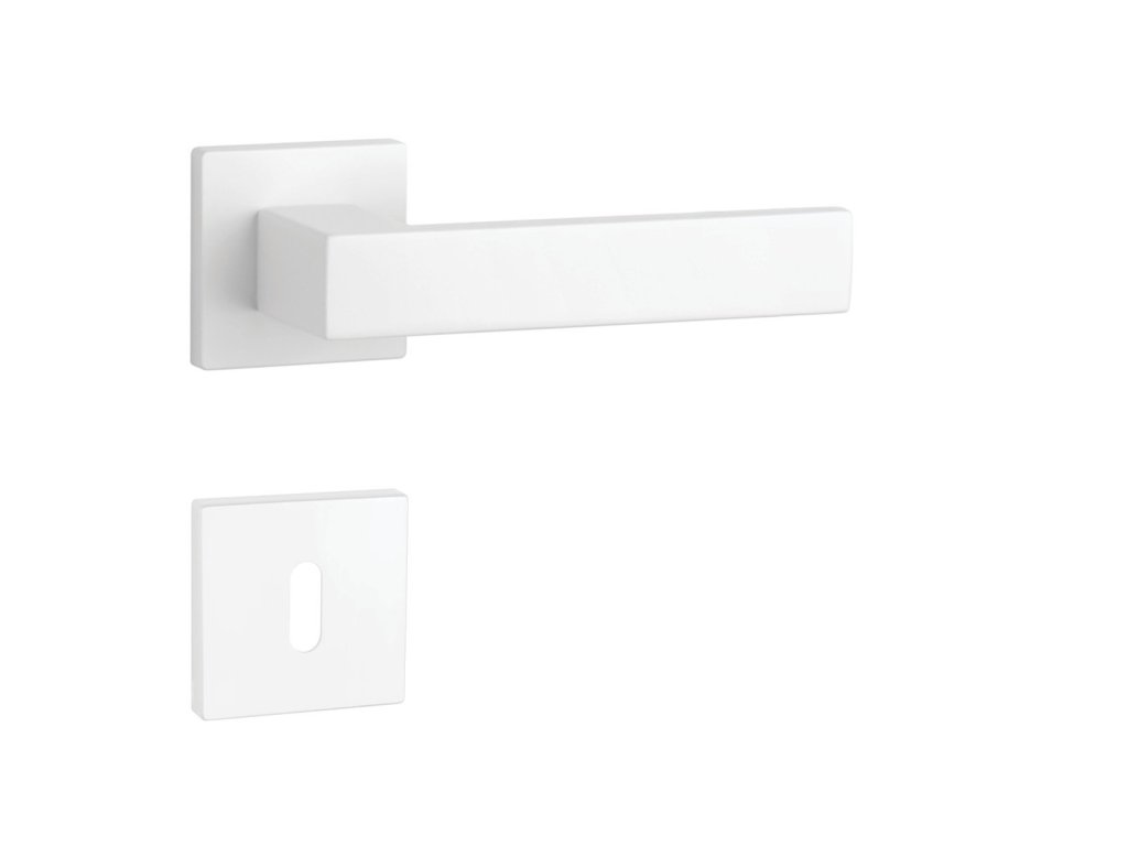Rozetová klika na interiérové dveře s hranatou rozetou je vyrobena z materiálů vysoké kvality - zamak a je povrchově upravena. Rozeta má rozměry 52x52 mm a tloušťku jen 7 mm. Minimalistický design rozety s vysokou stabilitou kliky na dveřích působí jemně, a tím ponechává prostor pro vyniknutí designu samotné kliky.