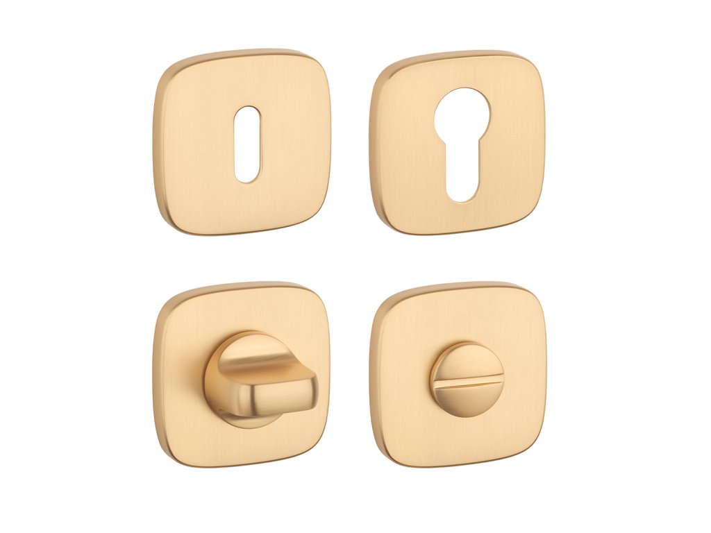 Provedení: oválný otvor pro interiérový klíč (BB), otvor pro cylindrickou vložku (PZ), WC set s vmontovaným klíčem. Balení obsahuje 2 kusy rozet (pár) a rozety WC jsou v balení jako set.