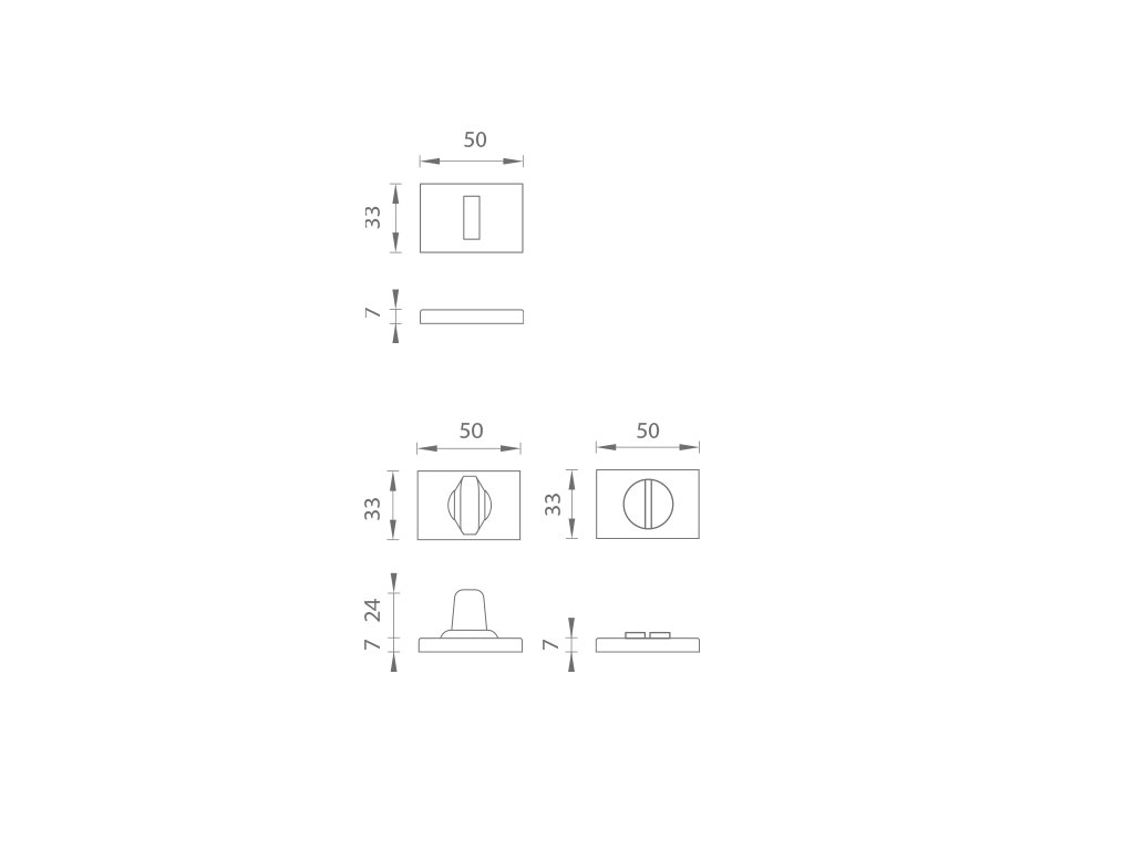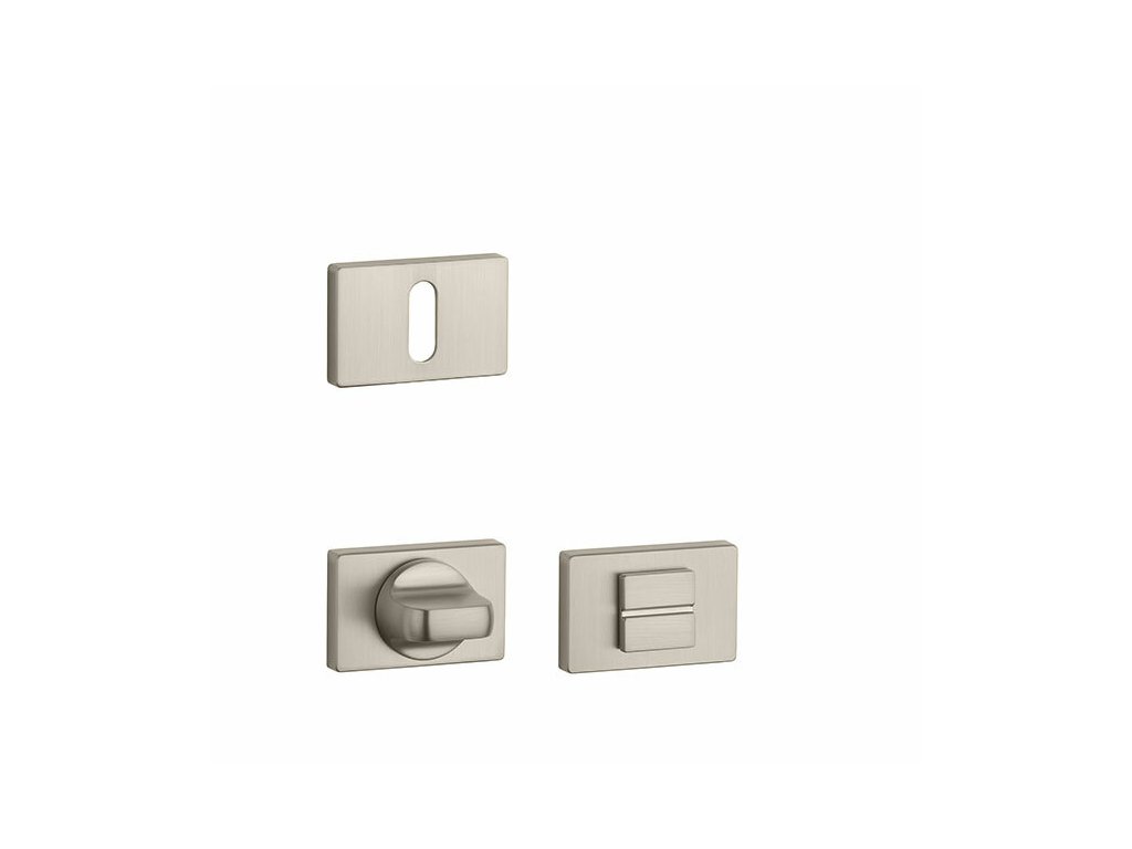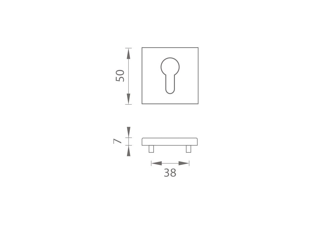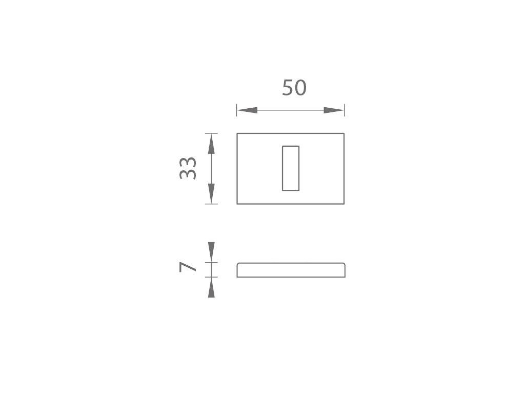 Obdelníková rozeta je vyrobena z materiálů vysoké kvality - zamak a je povrchově upravena. Rozeta má rozměry 50 x 33 mm, tloušťku 7 mm a oválný otvor pro interiérový klíč (BB), otvor pro cylindrickou vložku (PZ), WC set s vmontovaným klíčem. Balení obsahuje 2 kusy rozet (pár) a rozety WC jsou v balení jako set.