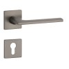 Rozetová klika na interiérové dveře s hranatou rozetou je vyrobena z materiálů vysoké kvality - zamak a je povrchově upravena. Rozeta má rozměr 52x52 mm a tloušťku jen 5 mm. Minimalistický design rozety s vysokou stabilitou kliky na dveřích působí jemně, a tím ponechává prostor pro vyniknutí designu samotné kliky.