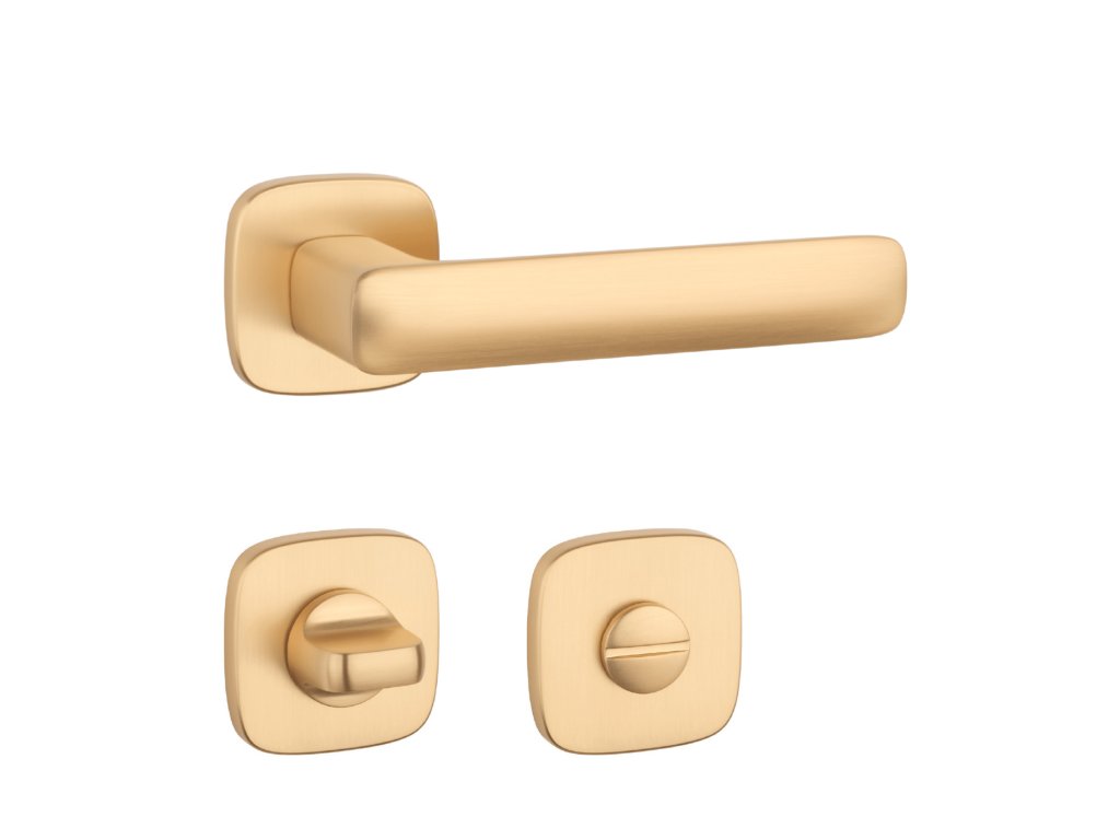 Rozetová klika na interiérové dveře s hranatou rozetou je vyrobena z materiálů vysoké kvality - zamak a je povrchově upravena. Rozeta má průměr 52 mm a tloušťku jen 7 mm. Minimalistický design rozety s vysokou stabilitou kliky na dveřích působí jemně, a tím ponechává prostor pro vyniknutí designu samotné kliky.