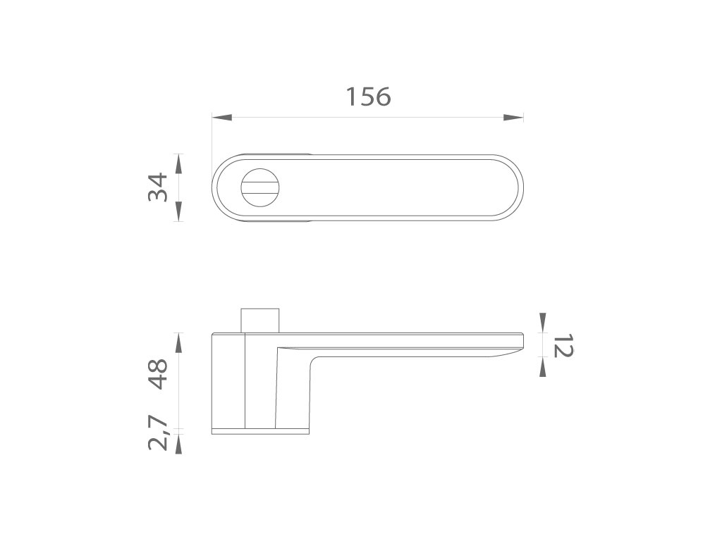 Rozeta má rozměry 48 mm x 34 mm. Je tenká jen 2,7 mm a stává se tak téměř neviditelnou součástí designu kliky.