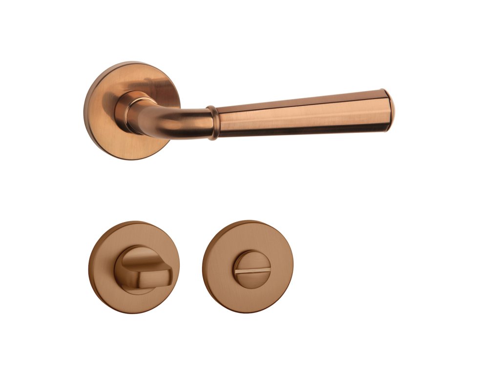 Mechanismus kliky obsahuje vratnou pružinu. Výstupky na rozetě zabraňují jejímu přetáčení a šrouby na prošroubování přes celou šířku dveří zaručí pevnější a stabilnější uchycení kování.