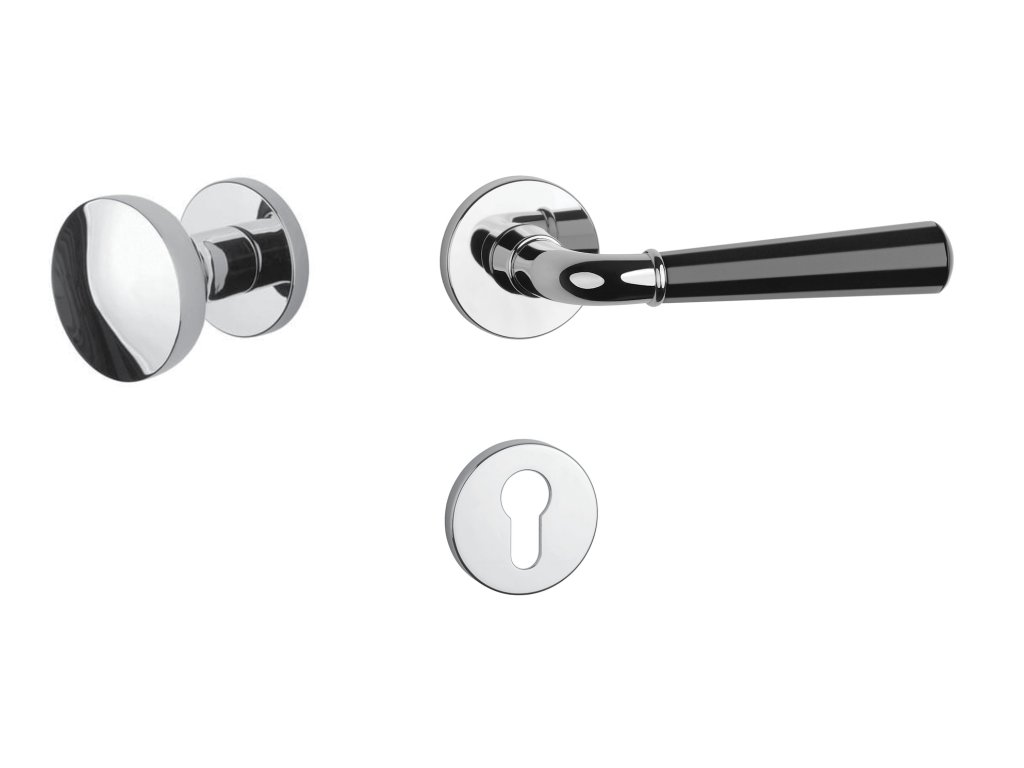 Základním materiálem použitým u klik MARIGOLD je zamak (slitina zinku) s lesklým povrchem. Kliky jsou na kulatých rozetách s průměrem 52 mm a tloušťkou jen 7 mm.