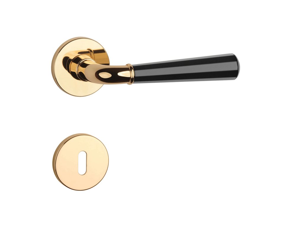 Základním materiálem použitým u klik MARIGOLD je zamak (slitina zinku) s lesklým povrchem. Kliky jsou na kulatých rozetách s průměrem 52 mm a tloušťkou jen 7 mm.
