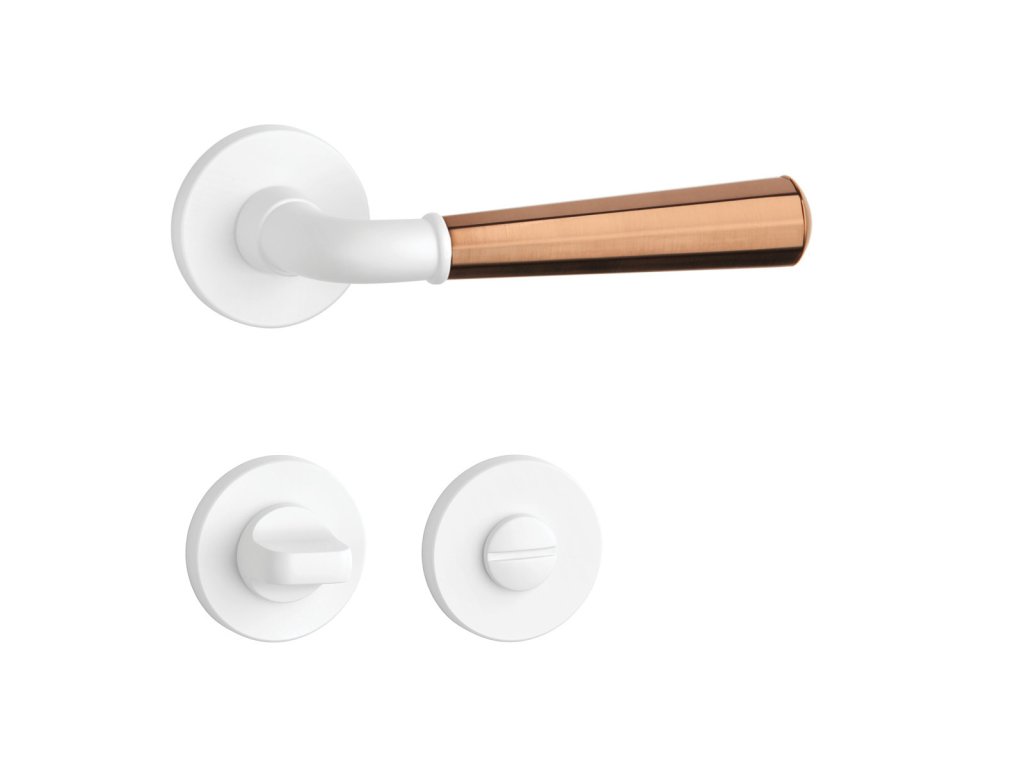 Mechanismus kliky obsahuje vratnou pružinu. Výstupky na rozetě zabraňují jejímu přetáčení a šrouby na prošroubování přes celou šířku dveří zaručí pevnější a stabilnější uchycení kování.