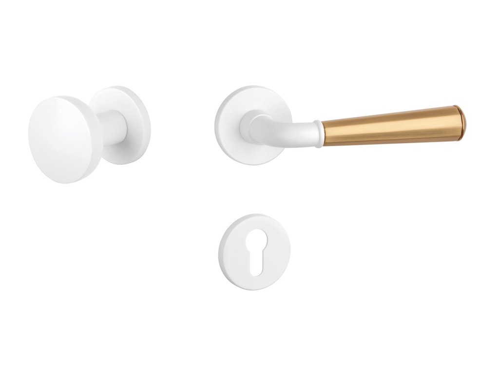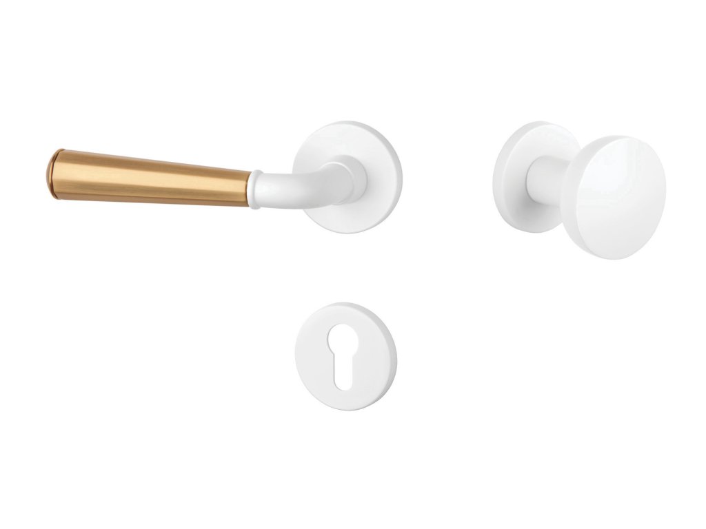 Základním materiálem použitým u klik MARIGOLD je zamak (slitina zinku) s lesklým povrchem. Kliky jsou na kulatých rozetách s průměrem 52 mm a tloušťkou jen 7 mm.