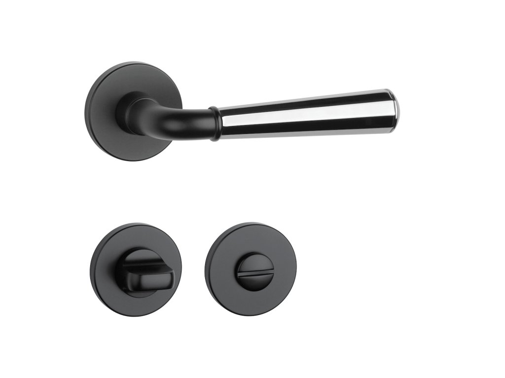 Mechanismus kliky obsahuje vratnou pružinu. Výstupky na rozetě zabraňují jejímu přetáčení a šrouby na prošroubování přes celou šířku dveří zaručí pevnější a stabilnější uchycení kování.