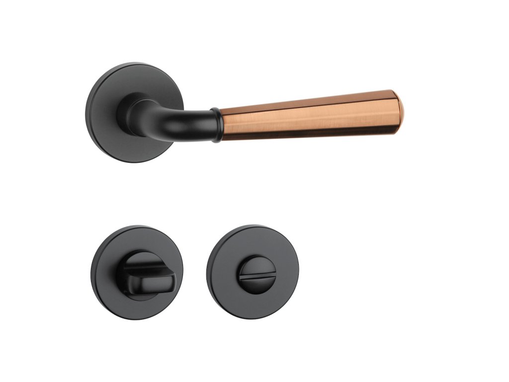 Mechanismus kliky obsahuje vratnou pružinu. Výstupky na rozetě zabraňují jejímu přetáčení a šrouby na prošroubování přes celou šířku dveří zaručí pevnější a stabilnější uchycení kování.