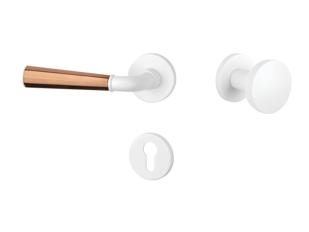 Základním materiálem použitým u klik MARIGOLD je zamak (slitina zinku) s lesklým povrchem. Kliky jsou na kulatých rozetách s průměrem 52 mm a tloušťkou jen 7 mm.