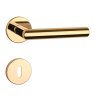 Rozetová klika na interiérové dveře s kulatou rozetou je vyrobena z materiálů vysoké kvality - zamak a je povrchově upravena. Rozeta má průměr 53 mm a tloušťku jen 7 mm. Minimalistický design rozety s vysokou stabilitou kliky na dveřích působí jemně, a tím ponechává prostor pro vyniknutí designu samotné kliky.