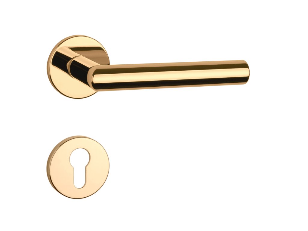 Rozetová klika na interiérové dveře s kulatou rozetou je vyrobena z materiálů vysoké kvality - zamak a je povrchově upravena. Rozeta má průměr 53 mm a tloušťku jen 7 mm. Minimalistický design rozety s vysokou stabilitou kliky na dveřích působí jemně, a tím ponechává prostor pro vyniknutí designu samotné kliky.
