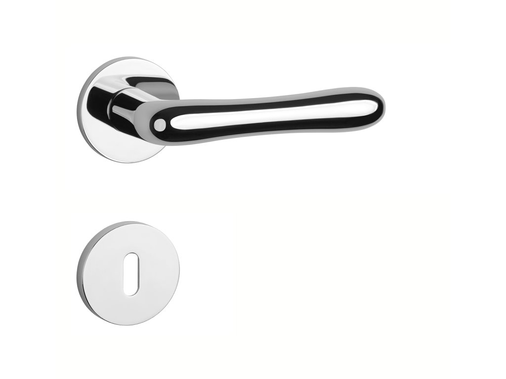 Rozetová klika CYNIA na interiérové dveře s kulatou rozetou je vyrobená z materiálů vysoké kvality - zamak je povrchově upravená. Rozeta má průměr 52 mm a tloušťku jen 7 mm. Minimalistický design rozety s vysokou stabilitou kliky na dveřích působí jemně, a tím ponechává prostor pro vyniknutí designu samotné kliky.