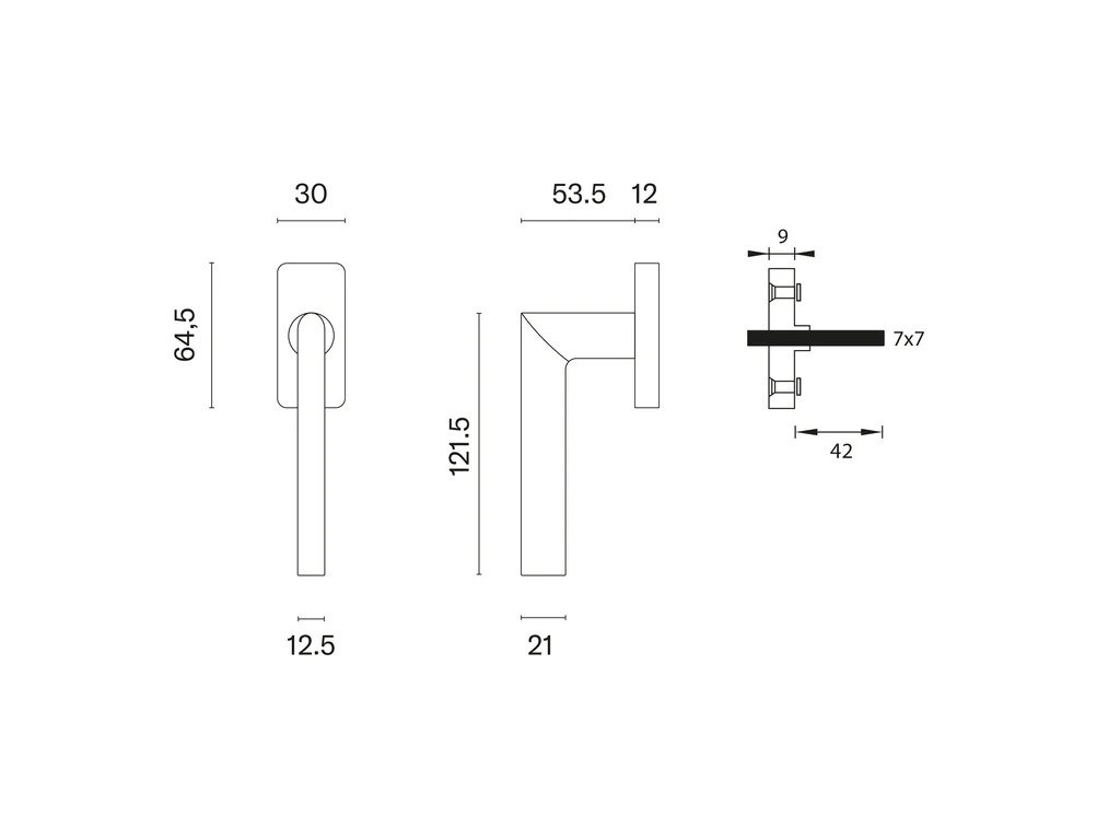 Rozeta má rozměry 64,5 x 30 mm a tloušťku 12 mm.