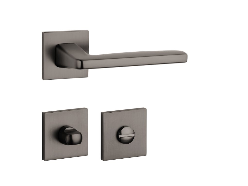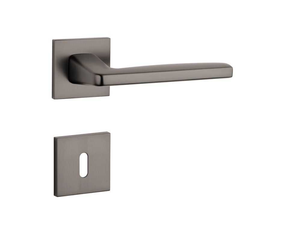 Rozetová klika na interiérové dveře s hranatou rozetou je vyrobena z materiálů vysoké kvality - zamak a je povrchově upravena. Rozeta má rozměr 53x53 mm a tloušťku jen 7 mm. Minimalistický design rozety s vysokou stabilitou kliky na dveřích působí jemně, a tím ponechává prostor pro vyniknutí designu samotné kliky.