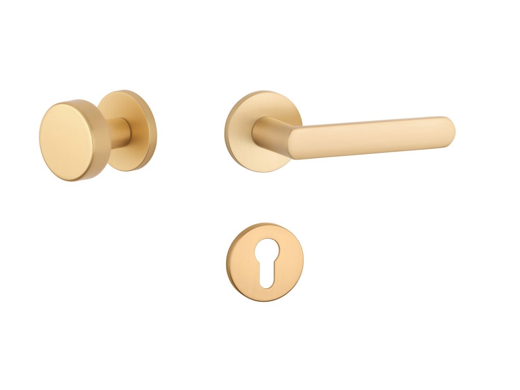 Rozetová klika na interiérové dveře s kulatou rozetou je vyrobena z materiálů vysoké kvality - zamak a je povrchově upravena. Rozeta má průměr 52 mm a tloušťku jen 7 mm. Minimalistický design rozety s vysokou stabilitou kliky na dveřích působí jemně, a tím ponechává prostor pro vyniknutí designu samotné kliky.