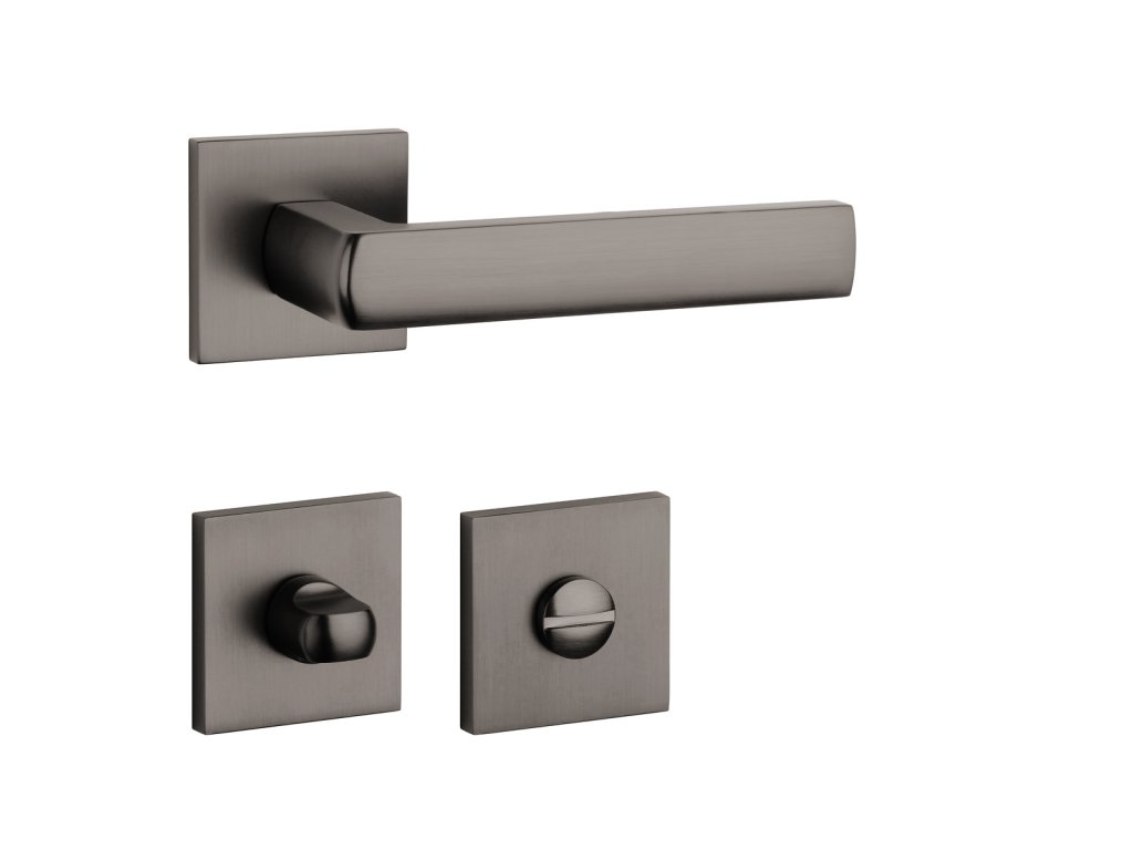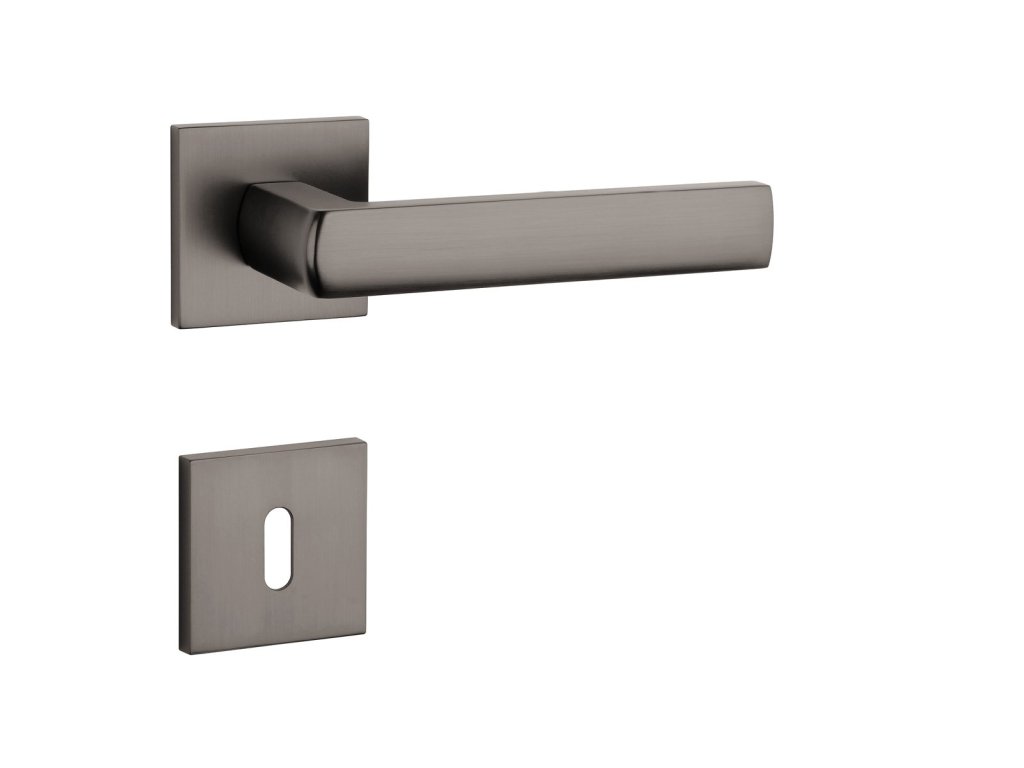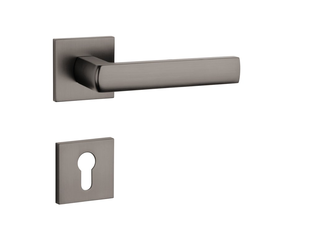Rozetová klika na interiérové dveře s hranatou rozetou je vyrobena z materiálů vysoké kvality - zamak a je povrchově upravena. Rozeta má rozměr 52x52 mm a tloušťku jen 7 mm. Minimalistický design rozety s vysokou stabilitou kliky na dveřích působí jemně, a tím ponechává prostor pro vyniknutí designu samotné kliky.