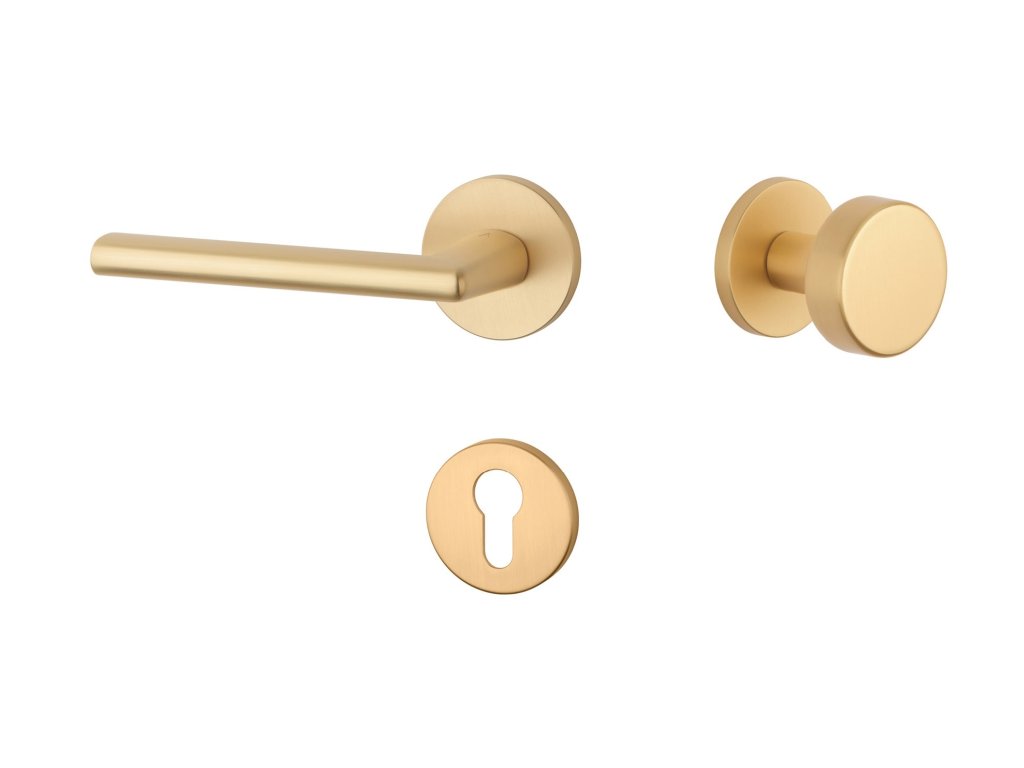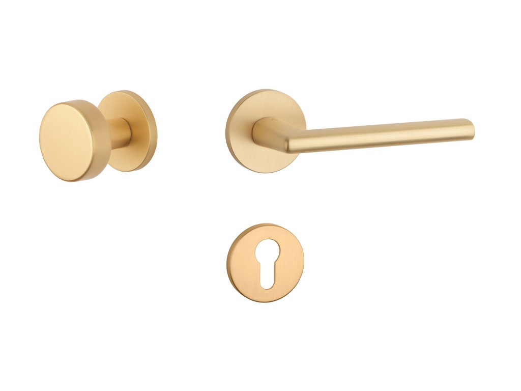 Rozetová klika na interiérové dveře s kulatou rozetou je vyrobena z materiálů vysoké kvality - zamak a je povrchově upravena. Rozeta má průměr 54 mm a tloušťku jen 7 mm. Minimalistický design rozety s vysokou stabilitou kliky na dveřích působí jemně, a tím ponechává prostor pro vyniknutí designu samotné kliky.