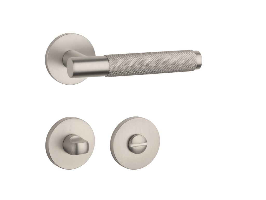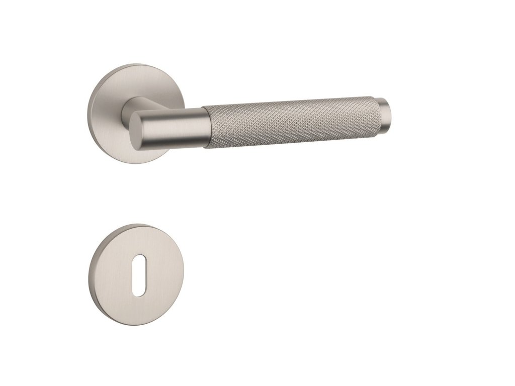 Rozetová klika na interiérové dveře s kulatou rozetou je vyrobená z materiálů vysoké kvality - zamak a je povrchově upravená. Rozeta má průměr 53 mm a tloušťku jen 7 mm. Minimalistický design rozety s vysokou stabilitou kliky na dveřích působí jemně, a tím ponechává prostor pro vyniknutí designu samotné kliky.