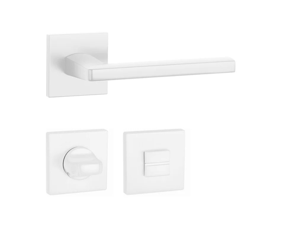 Rozetová klika na interiérové dveře s hranatou rozetou je vyrobena z materiálů vysoké kvality - zamak a je povrchově upravena. Rozeta má rozměr 52x52 mm a tloušťku jen 7 mm. Minimalistický design rozety s vysokou stabilitou kliky na dveřích působí jemně, a tím ponechává prostor pro vyniknutí designu samotné kliky.