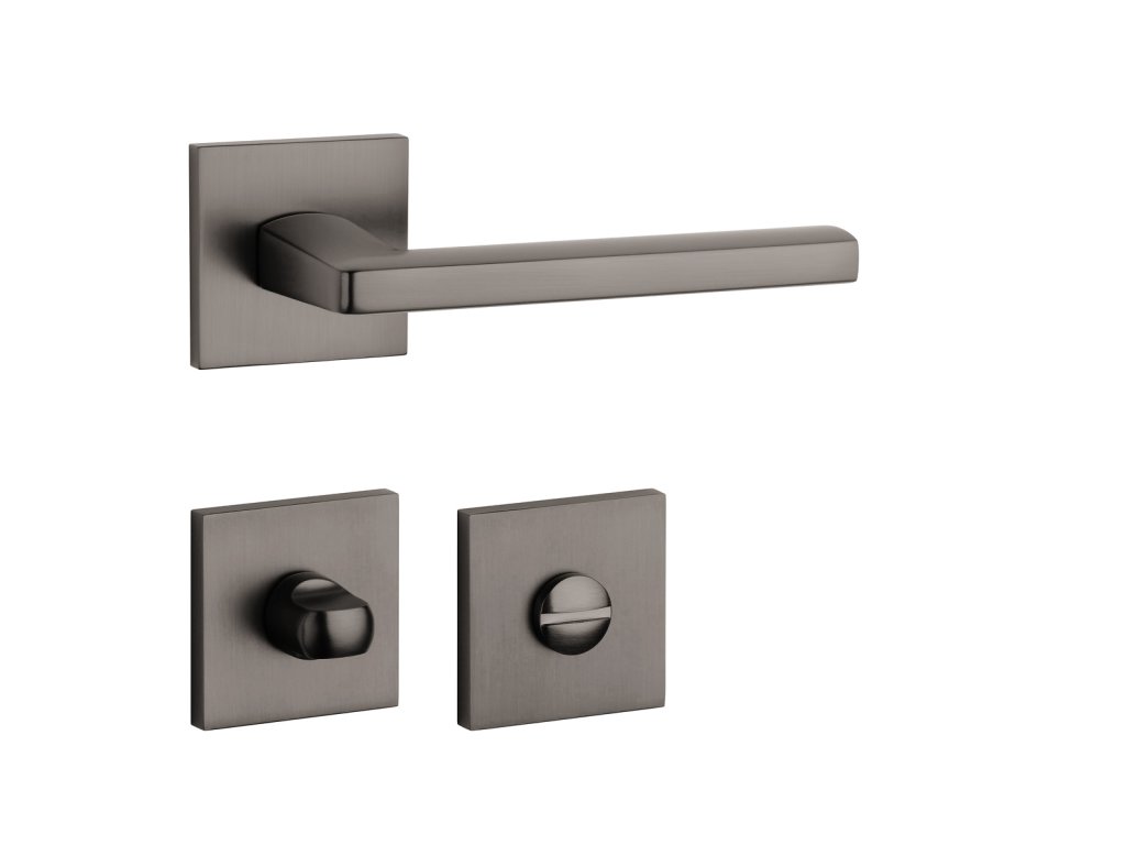 Rozetová klika na interiérové dveře s hranatou rozetou je vyrobena z materiálů vysoké kvality - zamak a je povrchově upravena. Rozeta má rozměr 52x52 mm a tloušťku jen 7 mm. Minimalistický design rozety s vysokou stabilitou kliky na dveřích působí jemně, a tím ponechává prostor pro vyniknutí designu samotné kliky.