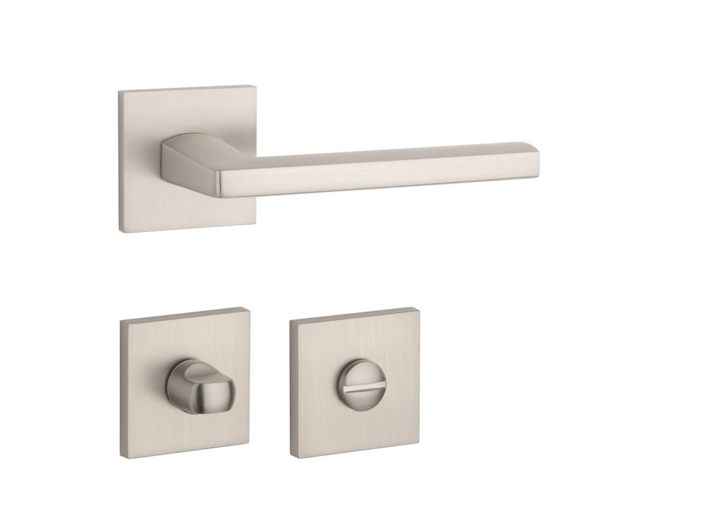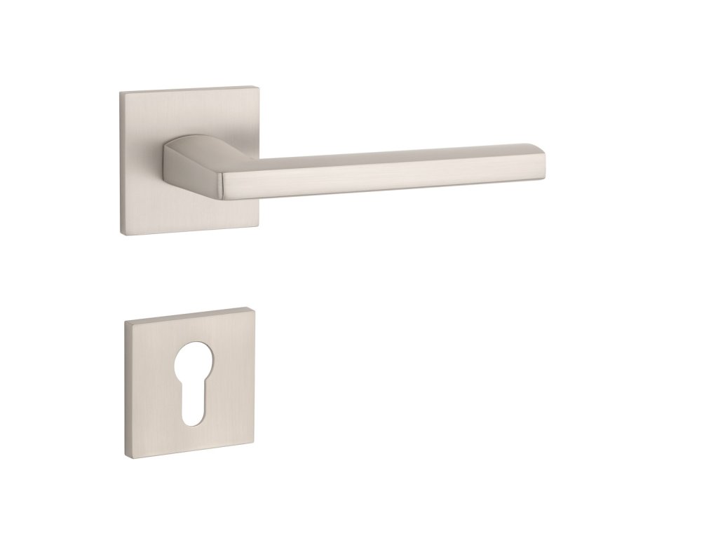 Rozetová klika na interiérové dveře s hranatou rozetou je vyrobena z materiálů vysoké kvality - zamak a je povrchově upravena. Rozeta má rozměr 52x52 mm a tloušťku jen 7 mm. Minimalistický design rozety s vysokou stabilitou kliky na dveřích působí jemně, a tím ponechává prostor pro vyniknutí designu samotné kliky.