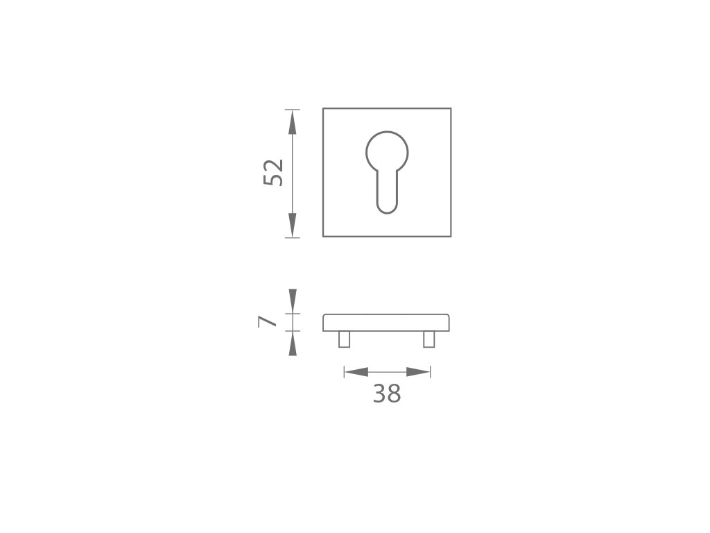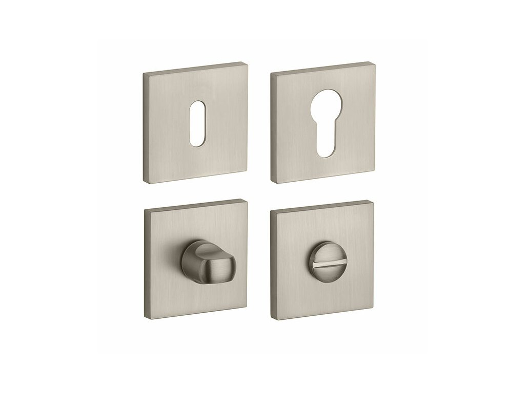 Hranatá rozeta je vyrobena z materiálů vysoké kvality - zamak a je povrchově upravena. Rozeta má rozměr 52x52 mm, tloušťku 7 mm a oválný otvor pro interiérový klíč (BB), otvor pro cylindrickou vložku (PZ), WC set s vmontovaným klíčem. Balení obsahuje 2 kusy rozet (pár) a rozety WC jsou v balení jako set.