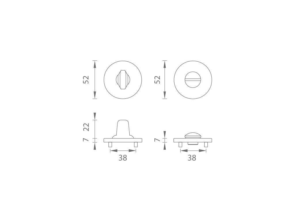 Kulatá rozeta je vyrobena z materiálů vysoké kvality - zamak a je povrchově upravena. Rozeta má průměr 52 mm, tloušťku 7 mm a oválný otvor pro interiérový klíč (BB), otvor pro cylindrickou vložku (PZ), WC set s vmontovaným klíčem. Balení obsahuje 2 kusy rozet (pár) a rozety WC jsou v balení jako set.